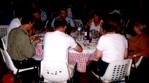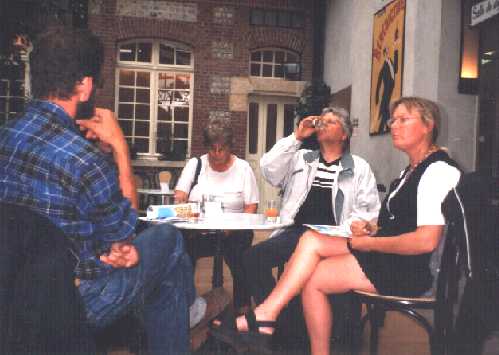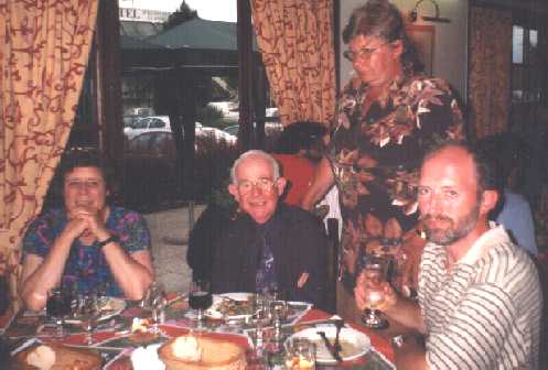 Copious refreshments at the Campanile, Amiens Glisy. The proprietors made us very welcome and indeed joined in the fun. |
